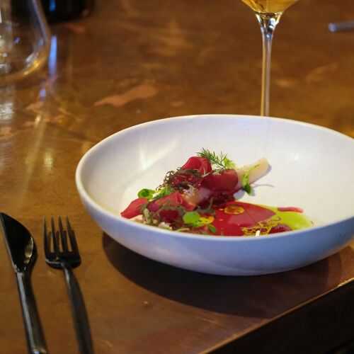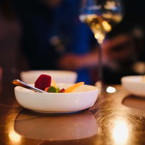 This hip bar is loud, lively and trendy – and therein lies its charm! In addition to the regularly changing à la carte selection of high-quality small bites and delicious dishes – also suitable for sharing – there is a wallet-friendly four-course set menu ("Chef's Choice"). For drink recommendations, just ask the proficient and laid-back waitstaff. The moderately priced wine list includes a decent selection of wines by the glass. For al fresco dining, tables are laid out on the terrace in the courtyard behind the restaurant and on the pavement in front of the building.