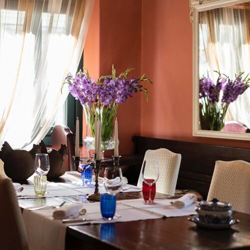 This fine restaurant immediately puts you at your ease thanks to a very jovial and friendly atmosphere. The lit fireplace, wood furniture with stylish linen runners and background music make for an excellent break. In addition to traditional courses such as cjarsons or the typical frico, there are more seasonal and Mediterranean fish dishes. Vegan menu available.
