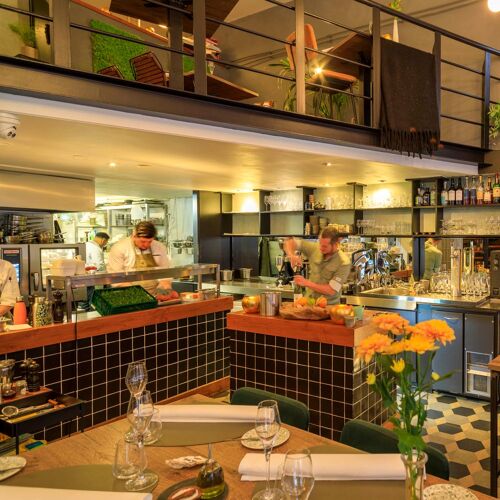 In this cheerful restaurant, the open design and abundant natural light set a relaxed scene. Wine recommendations come courtesy of hostess Saskia, who brings both enthusiasm and expertise to the table. Her astute pairings elevate chef Rik's creative, internationally inspired dishes to new heights. He keeps things simple, concentrating on three or four elements that enhance each other's intensity. For example, tub gurnard perfectly seared on the skin, set on a bed of fregola with a subtle kick of harissa and served with a tangy orange cream and a full-bodied yet airy smoked herring sauce. This clear style of cooking never fails to impress.
