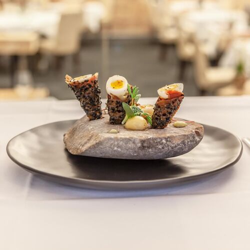 In a small side street in the island's old town, you will find this restaurant in a lovely vaulted cellar. In a stylish and modern setting, you can enjoy seasonal cuisine made with fresh, locally sourced ingredients. Opt for a set menu comprising four or seven courses, or choose from the small à la carte selection. At lunchtime, the options are more limited. Friendly front-of-house team. The secluded terrace in the courtyard is a pleasant spot. There is also a wine bar.