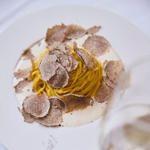 This Italian restaurant has been a mainstay of Schwabing's culinary scene since 1989. The interior is modern and elegant yet cosy, with the current decor successfully incorporating the old wall tiles and original bar. The menu sticks close to the seasons. In addition to the five-course tasting menu, there is an à la carte selection – from delicious pasta dishes to branzino al sale (salt-baked sea bass) for two.