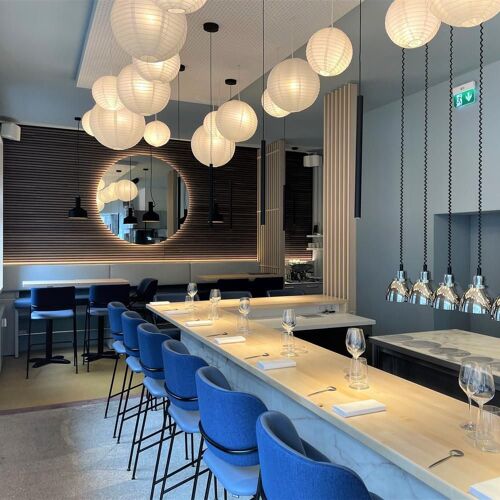 Jörg Wissmann (previously at such top-flight establishments as Vendôme, Nagaya and Agata's) serves up modern fusion cuisine with Asian influences here, reflecting his half-Korean roots and also incorporating classic French elements. The interesting sauces such as the beurre blanc with doenjang, a fermented soybean paste, certainly deserve a mention. His set menu also comes in a vegetarian version. To accompany your meal, you can opt for wine or a non-alcoholic pairing. A winning blend of Far Eastern and Scandinavian styles makes for a bright, minimalist interior – the seats at the counter offer fascinating insights into the work going on in the open kitchen. Scan the QR code with your phone to access the menu and wine list. Practical for motorists: the Creativ Center car park is just a few minutes' walk away.