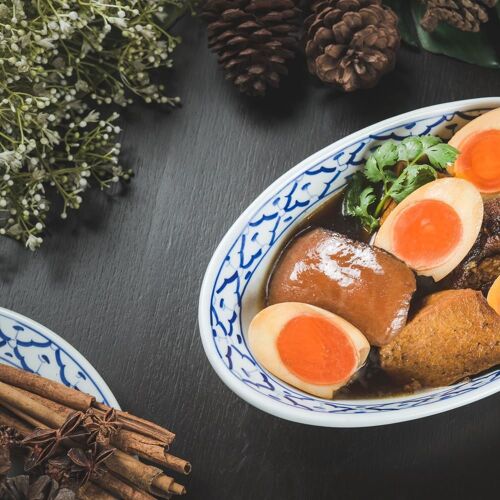 The Water Library’s Plu offers outstanding food, a cosy ambience, and great service in an Art Deco-adorned colonial house. Among the beautifully presented authentic pan-Thailand dishes is the signature braised pork belly and soft-boiled eggs in five-spiced soup; the pork belly is tender and juicy, the deep-fried tofu absorbs the aromatic broth, and the soft-boiled eggs only enhance the flavour and texture. Start with one of the restaurant’s signature cocktails.