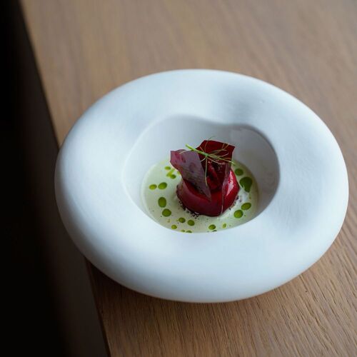 Alexis Baudin has had extensive work carried out on this building to transform it into a spacious contemporary restaurant. Lovely high ceilings and a palette of beiges bring understated elegance to this space opening onto a pleasant garden terrace with a hundred-year-old cedar tree. The chef aims to showcase local produce in his carte blanche menus: delicious ingredients such as vegetables from small market gardeners, mushrooms from the Meuse, saffron from Guémar, Wagyu beef from cows reared in Lorraine go into beautifully presented and perfectly balanced dishes. Flawless service.