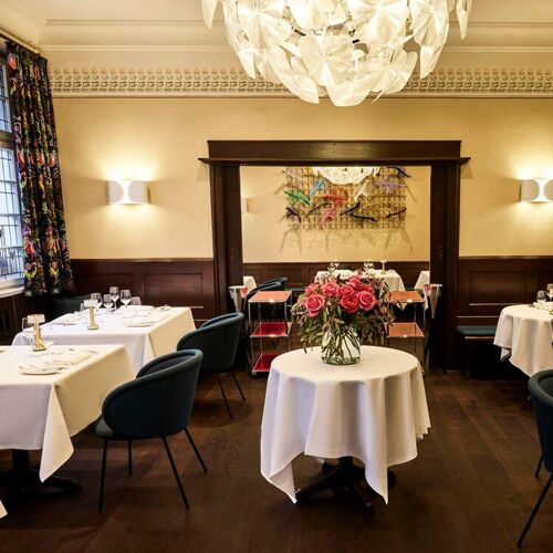 Since striking out on her own at the time-honoured Werneckhof near the English Garden, Sigi Schelling has remained true to her own culinary concept, building on classic foundations to deliver refreshingly light and accessible cuisine. Steering clear of gimmicks, she adopts a pared-down approach to create dishes such as "leek puree, nut butter, caviar" or "lukewarm char, fregola sarda, pea puree, smoked eel cream". The "Business Lunch" comprises three or four courses; in the evening a more sophisticated five-course set menu is served. The exceptionally pleasant atmosphere is thanks in no small part to the courteous and perfectly coordinated service team. Sommelier Xavier Didier is on hand to provide remarkably stylish service and spot-on wine recommendations. The restaurant boasts a lovely decor: Dark wood panelling and mouldings retain the character of yesteryear; elegant armchairs, striking chandeliers and artworks add a touch of modern elegance.
