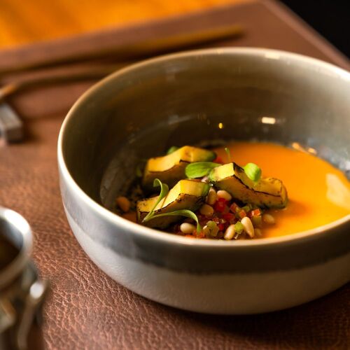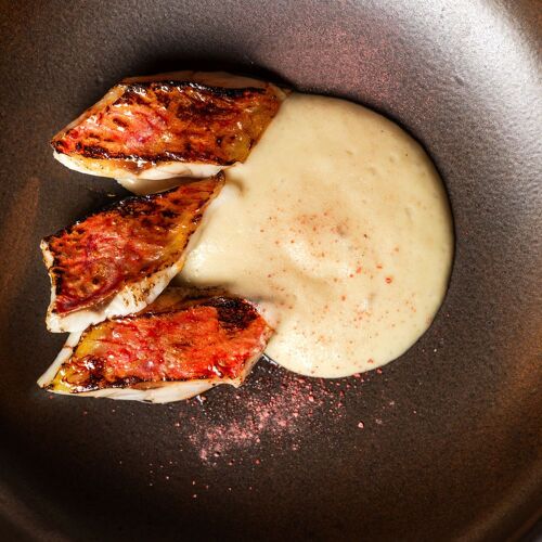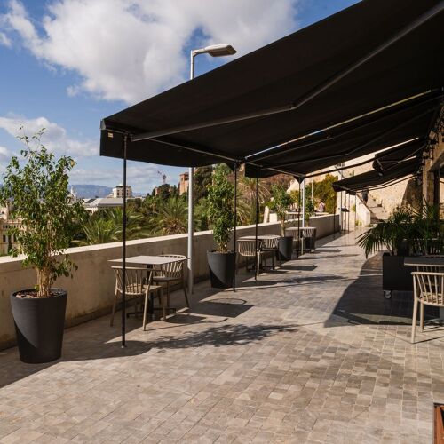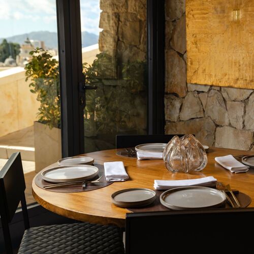Destaca por su emplazamiento en las laderas de Gibralfaro, donde un día estuvo el barrio de La Coracha, y desde su terraza ofrece una de las mejores vistas tanto a la ciudad como al Mediterráneo. El chef al frente, Pablo Rutllant, defiende a través de pequeños platillos un concepto culinario que combina la cocina viajera y la local, porque dice que Málaga es una ciudad "hecha de extranjería" que toma ideas culinarias de aquí y de allá. La carta, con platos como el Maizal del negro mar, los Puerros payoyos o el Mango citric, se ve apoyada por un menú degustación.