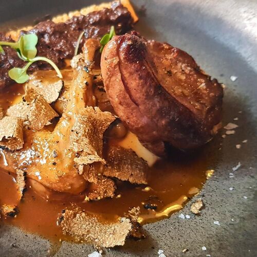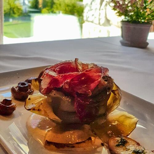 ¡Si buscas carne de calidad no dudes en venir! El restaurante ocupa un bonito edificio de estética alpina; sin embargo, lo realmente significativo es el hecho de que la misma familia se dedica a la restauración y a la cría natural de ganado vacuno autóctono. En su carta encontrarás deliciosos guisos caseros, algunas setas de temporada y sus sabrosísimas carnes a la brasa, provenientes tanto de la caza como de sus propias reses. La carne de sus terneras es famosa por tener un perfecto nivel de infiltración de la grasa entre las fibras musculares.