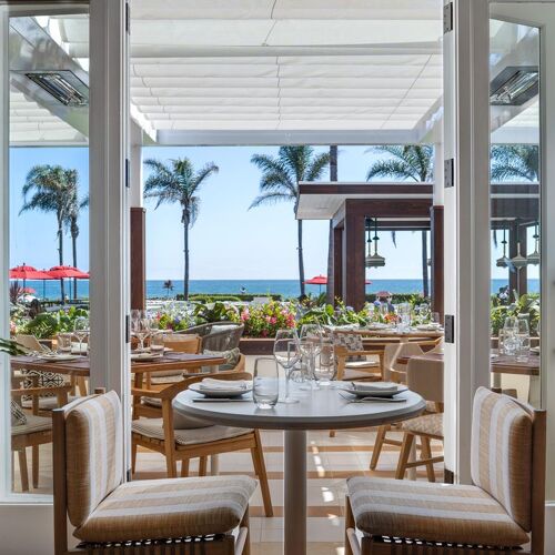 Deep-pocketed pescatarians will be delighted by the freshness and sustainability of the fish on offer—from inviting platters of raw oysters and cracked Maine lobster to flash-fried red snapper from Baja, offered by the pound for sharing. And even after the sun finally fades on the million-dollar view, the outdoor fireplace sets an exquisite mood.