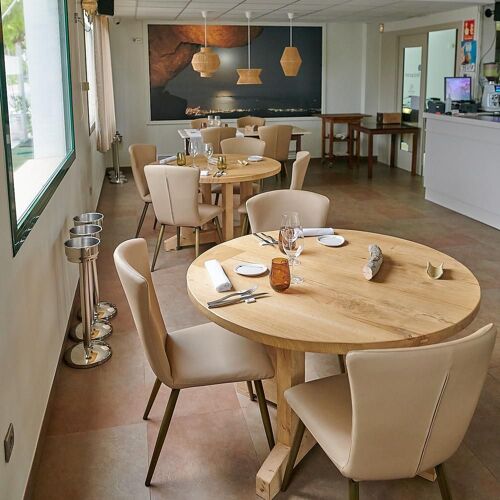Se halla en un hotel, el primero certificado con la Etiqueta Ecológica Europea (Ecolabel) en Cataluña... sin embargo, demuestra calidad para ser el indiscutible protagonista del negocio, ubicado en pleno Parque Natural del Delta del Ebro y con sus famosos arrozales a escasos metros. Joan Capilla, el chef-propietario, apuesta por los productos Km 0, por la sostenibilidad y por las técnicas más modernas en pro de una cocina tradicional actualizada. La carta, que destaca por su apartado de arroces y solo se sirve al mediodía, se ve enriquecida por varios menús: el Bib Gourmand, otro de mercado llamado Som Gastronomía, uno donde el chef nos hace un recorrido gastronómico por la zona denominado Sabors del Delta y, finalmente, Raíces del Delta, de carácter más vegetal (todos requieren reserva).