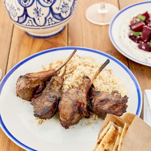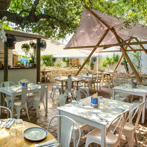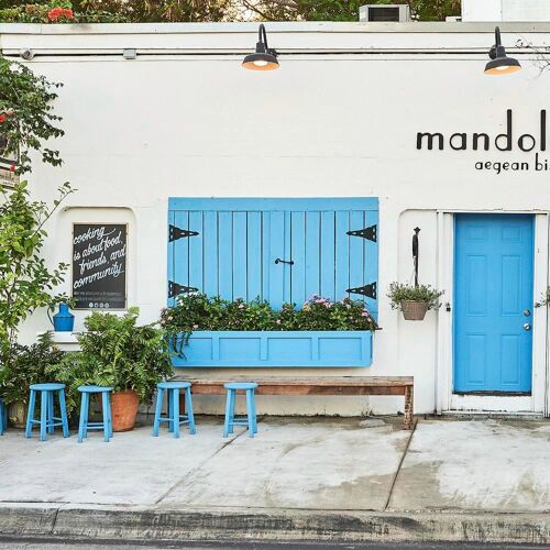 Founded by Ahmet Erkaya and Anastasia Koutsioukis, this charming bistro welcomes diners with a blue door and whitewashed façade. The space features wood tables, lacquered chairs and an outdoor bar, although the focus is on its courtyard dining area, enhanced with mature trees, orchids and electric fans. This mezze-heavy menu may unveil a creamy slab of baked feta with diced tomato, smoked chili flakes and Turkish peppers. Slices of house-baked bread, stuffed into small brown paper bags, accompany the excellent small plates. Salads, a grilled catch-of-the-day sandwich and larger items, like moussaka, are equally beloved.