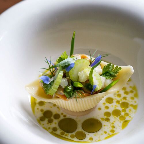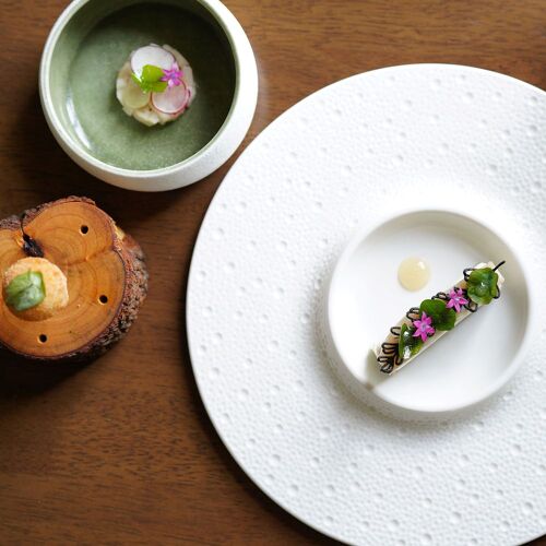 In this small village next to a bend in the River Lot, a beautiful and imposing manor house provides the setting for this restaurant, run by a former sous-chef from Le 1862 – Les Glycines and his partner. With space for just a dozen diners per seating, the space is an intimate blend of historical (period fireplace, marble) and contemporary. Each meticulously composed plate presents a harmonious dish, often accompanied by satellite dishes, such as the duck with dark fruits, beetroot and polenta cylinders. This modern cuisine is also firmly rooted in the terroir, making the most of seasonal local ingredients. In this culinary land of plenty, diners are spoilt for choice.