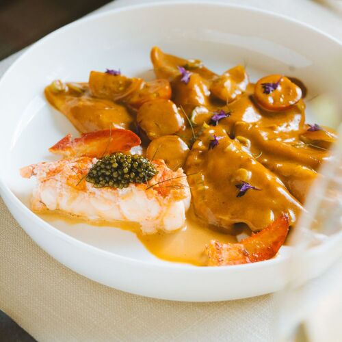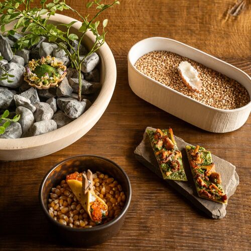 In the exclusive Rote Wand Gourmet Hotel – formerly a modest inn in Zug's old schoolhouse – guests are treated to a very special culinary experience. After an aperitif and a selection of appetisers in the little parlour downstairs, you proceed upstairs to a chic dining area in which warm wood meets sleek design; there you take a seat on one of the comfortable bar chairs arranged around a horseshoe counter. A special atmosphere reigns here, and this is due in no small part to the well-coordinated, charming and laid-back service team. Julian Stieger, who comes from Upper Austria, brings his highly unique and modern style to the table: his dishes are very modern, complex yet devoid of unnecessary frills. For example, his delicious "Blutwurstbrot" is a fine-crumbed, moist bread topped with an apple and black pudding compote that is at once fruity and delicately spiced, and sprinkled with truffle shavings at your table. The dry-aged duck is also wonderful – crispy on the outside, tender on the inside – served with an aromatic creamy cep mushroom and chive oil sauce, lent an interesting texture by just the right amount of tonburi seeds. They have a surprise set menu, which can be made vegetarian if ordered in advance.