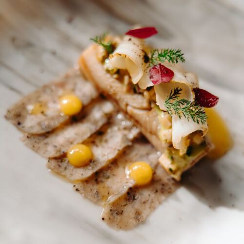 Find a table on the spacious terrace of this modern winery to enjoy wonderful views out across the vineyard and the hills; on a warm summer’s day, it doesn’t get much better than this. The well-curated wine list covers Hungary and Europe, and includes reds and rosés from the vines you see in front of you, as well as whites from the owners’ other winery in Tokaj. The concise selection of contemporary dishes take their inspiration from the Hungarian kitchen but exhibit a level of refined creativity. The passionate team will share their knowledge to help you find the perfect wine match.