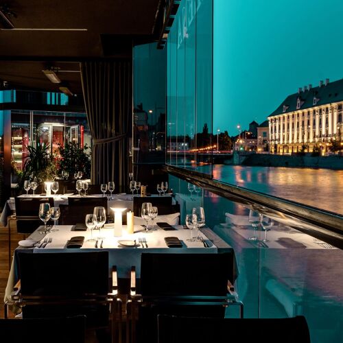 Situated in a prime spot on the banks of the River Oder, there are few restaurants with a more enticing terrace than this. Ask for a seat here and, on a warm summer’s night, watch as darkness falls and the streetlights gleam on the river’s surface. The setting is matched by cooking that puts an emphasis on top-quality local meats – for dessert, look out for the chocolate fondant with a fruity punch. Let the knowledgeable staff guide you in picking complementary wines.