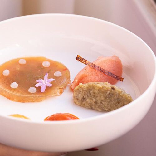 La cheffe a repris les cuisines de ce restaurant aux accents marins où elle s’était formée avec son père, modernisant à sa sauce la tradition familiale. Elle aime associer des beaux jus concentrés à ses plats (poulpe au jus de cochon) ainsi que des saveurs sucrées-salées (langoustine, navet, amandes). Également sommelière, elle met tout son cœur à conseiller des accords mets et vins très pertinents !
