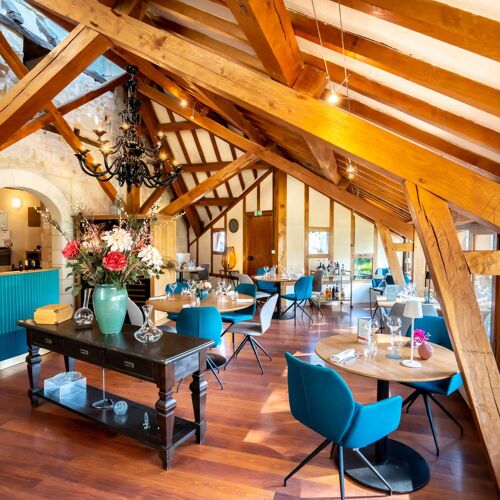 Blottie au pied du château, belle maison en tuffeau abritant de charmantes salles à manger (joli parquet, charpente apparente, murs en pierre) et de paisibles petites terrasses. Le chef Anthony Vaillant propose une bonne cuisine dans l’air du temps, ponctuée de quelques notes créatives bienvenues : déclinaison d'asperges et de petits pois, boostée par une vinaigrette aux agrumes ; cabillaud relevé par une sauce au curry, mousseline de pomme de terre. Service aux petits oignons. Carte des vins faisant la part belle aux vins de la région. Un agréable moment !