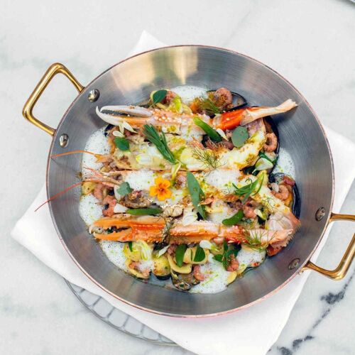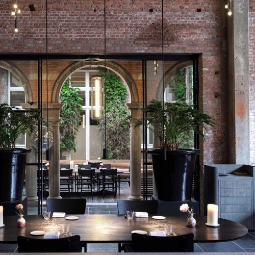 In this trendy district of Antwerp, Le Pristine is synonymous with Sergio Herman’s stylish trademark. The hip, laid-back café is open all day (with or without a booking) for casual snacks and nibbles such as mussels from Zeeland flavoured with lovage and savoury pecorino or a mini Mediterranean-style pizza on an aspic theme. The restaurant sports an upmarket, neo-industrial-loft vibe courtesy of a high ceiling, polished table service and a modish interior that mingles designer and vintage details. In the ubiquitous open-plan kitchen, Gianluca Vetrugno rolls out his manifold talents, blending Italian romanticism and seafood delights with great sensitivity. Balanced, fresh and acidic, even surprising at times, illustrated by a carpaccio of gambero rosso, jazzed up by bloody orange and pistachio. We recommend the spinach and ricotta cannelloni stuffed with Eastern Scheldt lobster and paired with a delicate mousseline sauce of champagne and fresh sea buckthorn. Purity and generosity go hand in hand at Le Pristine, which puts on a high-flying, world-class show every time.