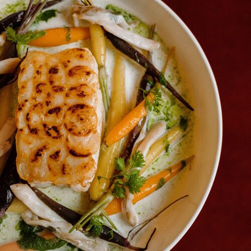 Scallops "in a nod to Ressources"; gravlax of pollack, beurre monté with miso; gnocchi, Tokyo turnip and wild garlic; mountain pig, poivrade artichokes, citrus condiment… you may have recognised the stamp of Tanguy Laviale, chef at the restaurant Ressources: the clue is in the name of the first mouth-watering dish. Behind an attractive façade of glass and old-style wooden frames, he proposes a laid-back, no-frills version of his fine dining restaurant in the form of set menus – either you decide which courses you would like, or leave it up to the chef's discretion. The 1 000-strong wine list, which shows a penchant for natural wines, has been curated by sommelier Maxime Courvoisier.