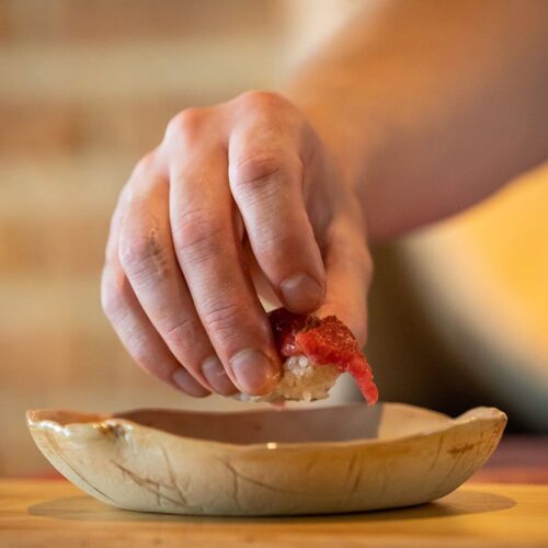 At Akase, where the restaurant describes what it offers as 'market-inspired cuisine with a Japanese soul', the focus is on ingredients sourced from in and around Cádiz in order to create surprising Japanese cuisine that is guaranteed to please guests’ palates. Chef Jaime Mena’s cuisine, with its emphasis on show cooking for a maximum of 8 covers per service, is showcased on a single tasting menu ('Daimyo') that starts with several dishes local to Cádiz but prepared with Japanese cooking techniques (cuttlefish cut into usuzukuri, blue crab marinated in sake, cured Cádiz whiting, etc.). When it's time for dessert, they also turn to classic Japanese creations to introduce us to koji (a fungus used in fermentation to make soy sauce, miso, sake, etc.) and, through bubble tea, to explore the bodegas and vineyards of Jerez and its surroundings. We strongly recommend booking ahead.