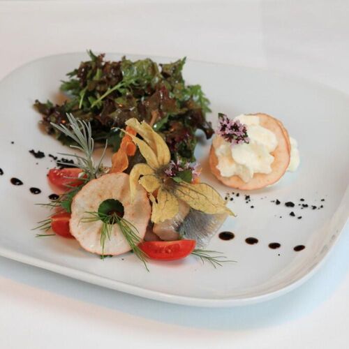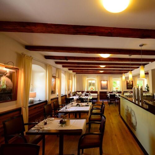 Inside, the modern dining rooms are done out in a pretty, rural style; outside, there is a lovely courtyard with a view of the kitchen. The seasonal cuisine is regional and international, and they are keen to use local produce. You can choose between the "Landidyll" set menu and "A la carte menu". And those who want to do without meat can look forward to a vegan set menu. Overnight accommodation in the traditional Erbgericht.