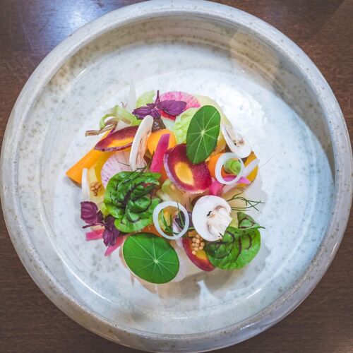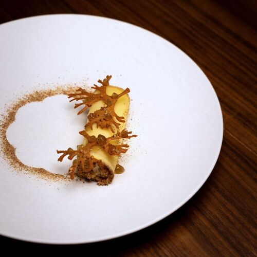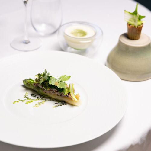 The village of Chigny-les-Roses in the heart of the Montagne de Reims is the site of this restaurant in a former classroom, which is, indeed, entirely hemmed in by vineyards. Chef Benjamin Gilles can be seen in the kitchen through a window in the dining room. Now his own boss, he signs modern dishes overflowing in fresh flavours and enhanced by a zest of creativity. Vegetables and fruit feature prominently in his culinary score through a variety of preparations (raw, cooked, pickled).