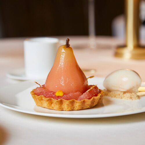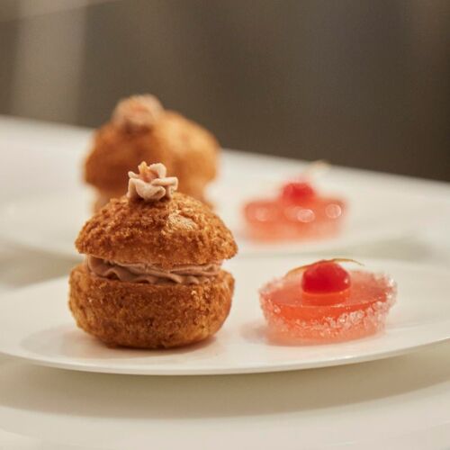 The menu pulls influences from all over, hopscotching across Italy and France to Asia. Dishes, like the foie gras plated with blood orange compote and served alongside warm, spiced madeleines, have a grand flair while featuring earnest cooking. Even a plate of asparagus is elevated, thanks to creamy avocado slices and a punchy vinaigrette. The meal concludes with a teardrop-shaped chocolate tart that delivers on every level with black cardamom crémeux, tonka whipped ganache, and buckwheat caramel sided by marzipan ice cream.