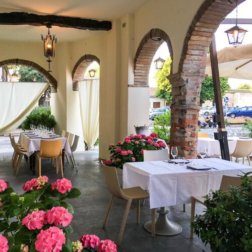Nel caratteristico centro della bella località divisa dal fiume Adda e cinta da mura antiche, si trova un locale dalle note rustiche unite ad elementi più attuali, con il piacevole dehors sotto al portico. Propongono una cucina regionale (vedi la spuma di torrone con cioccolato fuso) e italiana (filetto di maialino glassato al miele di zagare e arance siciliane), ma attualizzata e alleggerita. Interessante la bella selezione enoica, costruita negli anni dal patron con cura e passione.