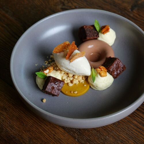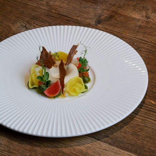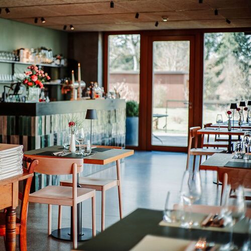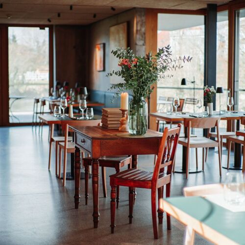 The juxtaposition of Gasthaus Sternen, with its traditional half-timbered façade, and the adjoining modern Aparthotel makes for an eye-catching architectural ensemble, the setting for this inviting contemporary restaurant. Chef-patron Peter Bogdanovic presents an ambitious take on seasonal regional cuisine in the form of creative and visually appealing dishes. Options such as smoked eel from Lake Constance with kohlrabi, crème fraîche, wasabi and apple sorbet, or braised Black Angus beef shoulder with root vegetables, red wine caramelised onions and polenta can be ordered à la carte. Alternatively, take a punt on the "Schmackofaz Sternen" set menu. Thanks to the location right by the Aach River, the terrace is a particularly popular spot in summer. Tip: House-made spice blends and herb oil are available for purchase in the compact Sternen Shop.