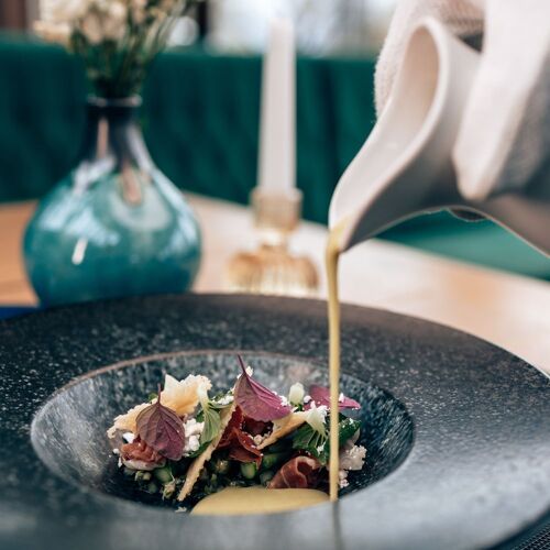 There are few places more relaxing to dine than on the stepped riverside terrace of this modern wood and glass building located in the heart of wine country. Szabó and his front-of-house team warmly welcome you in, while his brother Bém works behind the scenes in the kitchen preparing a concise menu of modern Hungarian dishes. Good quality produce comes from their carefully selected suppliers, whether that’s local Mangalitsa or trout from Lillafüred, which could arrive served ‘karpati’ style with a creamy fish bone sauce. Considering the location, a Tokaj wine is the natural accompaniment.