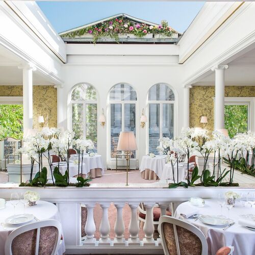 Cette prestigieuse institution parisienne, installée dans un élégant pavillon des jardins des Champs-Élysées, incarne l'image même du grand restaurant à la française : le luxe du décor, la culture des arts de la table, le service orchestré avec élégance, tout dessine un écrin unique à la gloire de la gastronomie. De vastes baies vitrées ouvrent sur les Champs-Élysées. La cuisine de Yannick Alléno est éblouissante et technique, avec une mention spéciale pour les jus et les sauces (ce que le chef appelle "le verbe de la cuisine française"), magnifiés à travers de savantes extractions : ou comment l’avant-garde se met au service de la grande tradition culinaire française.