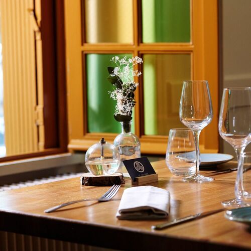 We fell head over heels with this lovely bistro! The blackboard features a fresh and generous take on traditional dishes that will make your taste buds go wild: pâté en croûte; calf's head with gribiche sauce; saddle of rabbit, potato purée, mustard sauce; game in season, not forgetting a vegetarian offering. Fine choice of reasonably priced tipples. Reservations recommended.