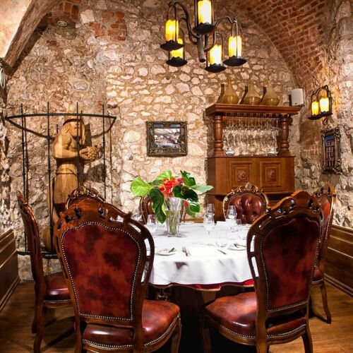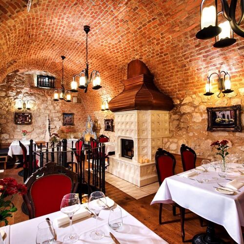 In a characterful location down a cobbled street near the Wawel Royal Castle, this attractive restaurant has a distinctive medieval style. The walls are hung with tapestries, with matching seat cushions in place on the white wooden banquettes; downstairs, amongst the brick and stone, there's a more cosy, dimly lit vibe. Dishes like homemade pasta with game sauce fuse hearty flavours with careful technique. Above the restaurant are three richly furnished suites.
