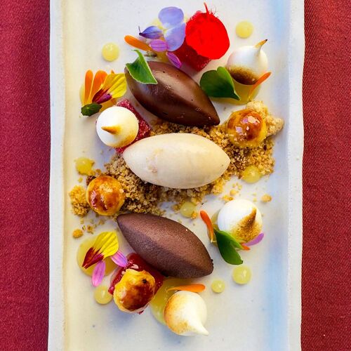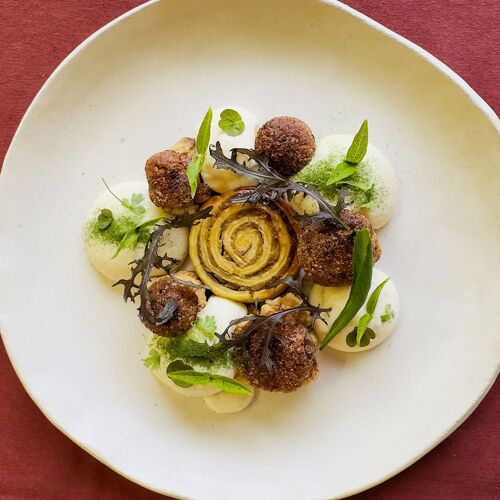 Augustin Guibert, a.k.a. Guss, a chef with an impeccable track record, has gone solo in this contemporary eatery on the ground-floor of a handsome 19C stone building. This inventive cook impresses with his manifest technical skill, which allows him to play with flavours and textures, as is the case with a crunchy tartlet of velvety onions, carrots confit in their jus, calamansi gel, pesto ice cream and a cromesquis of feta and honey. Hats off to the loving care and attention lavished on the splendid local produce, particularly veggies. We warrant that each colourful dish will bring a smile to your lips.