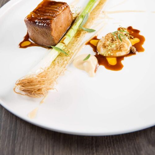 How might the "Tourteaux touch" be summed up? A certain kind of confidence, boldness and measured risk-taking. For example, when it comes to local ingredients and spices from afar, it's not either/or, it's both! A scorpion fish from Nice comes up against a fish broth enhanced with vadouvan, a heavily aromatic blend of Indian spices... They often go out on a limb, but the risk always pays off. Fine and masterful cuisine with character from start to finish. Bravo!