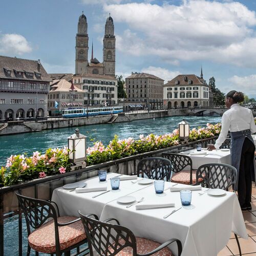 This venerable townhouse enjoys a fantastic location in the heart of Zurich – the small terrace is a lovely spot in the summer. With its elegant contemporary decor, the interior is also inviting, and the charming hostess provides attentive service. Prepared using select ingredients, the dishes draw on Mediterranean and Asian influences. Options on the menu range from veal cordon bleu with truffle Brie to tuna with sesame and a ginger and mango sauce. Shorter, simpler menu at lunchtime.