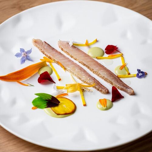 A meal at this restaurant housed in the outbuildings of a 13C manor on the outskirts of Guérande is a must. Quality ingredients that are meticulously sourced from the region go into modern cuisine with bold flavours. This lunchtime, the starter of asparagus and octopus, enhanced by pronounced herbaceous flavours, was well made; the cod precisely cooked in hazelnut butter was accompanied by tasty ravioli. The pear dessert plays on sweet and sour with great success.
