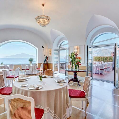 Este clássico hotel 5 estrelas tem sido um favorito desde sua inauguração em 1820, e é fácil de perceber o motivo: essa vila na beira de um penhasco tem vista para o mar e para a Baía de Nápoles de uma das posições mais privilegiadas de Sorrento. Até os dias de hoje, o Bellevue Syrene esbanja a elegância do século XIX, pouco diminuída pelas recentes renovações. Enquanto alguns dos móveis e decoração foram modernizados, a atmosfera como um todo está mais majestosa do que nunca.