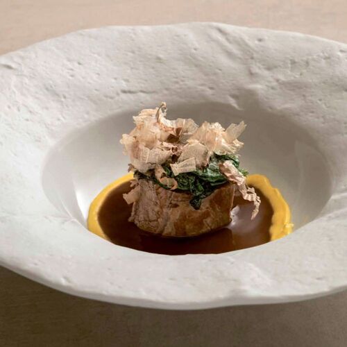 The story of Vitantonio Lombardo captures the essence of Matera – an old abandoned cave has been converted into an elegant dining room and transformed into one of the town’s most successful gourmet restaurants. Situated in the heart of the Sassi district, the restaurant enjoys the perfect location for a post-dinner stroll through one of Italy’s most charming historic centres, especially at night when the soft light gives the town a haunting appearance when viewed from the belvedere at Piazza Duomo. The chef demonstrates a strong connection with the region through his cuisine, often choosing recipes and ingredients from Lucania and then interpreting these with a freedom that results in personalised and creative dishes. His creations (some of which are long-established old favourites) showcase the traditions of the region in a way that also appeals to the tastes of contemporary diners (many of whom are from outside Italy), ably assisted by the excellent Donato, his long-time colleague front of house. We particularly enjoyed the tuna tartare with a “corteccia di crapiata” (a local green soup which he serves with a crispy texture), smoked olive oil and red onion ice-cream; the “calamarro” (squid stuffed with lamb entrails) and the “Monte Crusko” dessert with its elegant crusco pepper ice-cream.