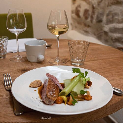 Chef Romain Hertrich and sommelier Romain Lambert, after stints in top establishments in France and abroad, are at the helm of this pretty half-timbered inn. Pan-fried girolles with pak choy, pumpkin seeds and pine nuts, or seared beef chuck steak with onion and beetroot pickles... All produce are from organic or small producers. Thoughtful food-wine pairings.