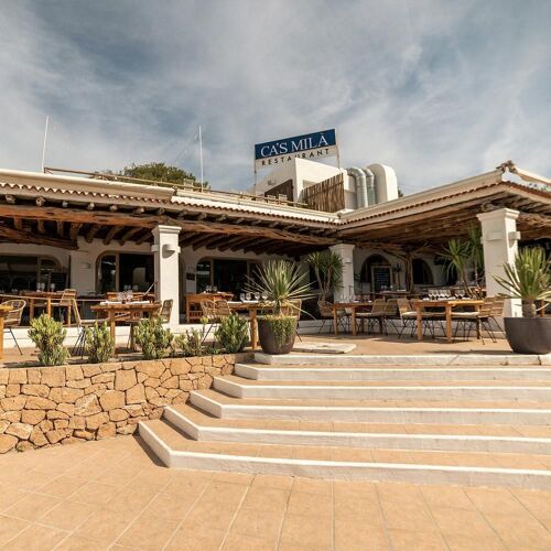 A restaurant in which to savour the flavours, aromas and sea views to the full. Along with its simplicity, Ca's Milà stands out for its homely atmosphere, attentive service and its location right by the beach, practically clinging to the cliff, along with charming terraces and romantic views. Its traditional Ibizan cuisine specialises in fish (mainly cooked à la plancha or on the grill) and rice dishes.
