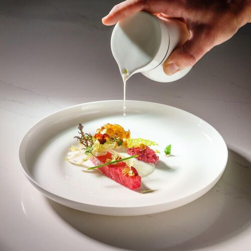Affable TV chef Björn Freitag is a household name in Germany. In 1997, at the age of 23, he took over this long-established restaurant, breathing new life into the kitchen. In 2002 the place was awarded a MICHELIN star, which he and his team have maintained ever since. The menu features a modern and seasonal take on classic dishes, in which the wonderful flavours of select ingredients are most harmoniously combined. An example is the beautifully presented mosaic of salmon trout with fresh, fruity apple pieces and a delicately spicy onion broth, baby leeks, crunchy little rye bread chips and smoked crème fraîche. The food is excellent, and the charming, adept service and upscale, elegant decor are the icing on the cake. Tip: As is customary in the region, the staff will also be happy to serve you an expertly poured, crisp pilsner! There is a cookery school in the same building.