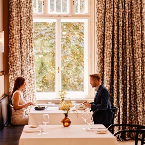 This elegant restaurant is located in an attractive Art Nouveau villa in manicured gardens. Beneath the high ceiling, take a seat at beautifully laid tables and relish the friendly, attentive service. The restaurant serves contemporary cuisine made with seasonal ingredients in the form of an à la carte or set menu. The reasonably priced lunch menu is popular. There is a charming terrace with a view of the countryside. Tasteful guestrooms are available for overnight stays in a separate guesthouse and the premises are close to the Red Bull Ring Formula 1 racetrack.