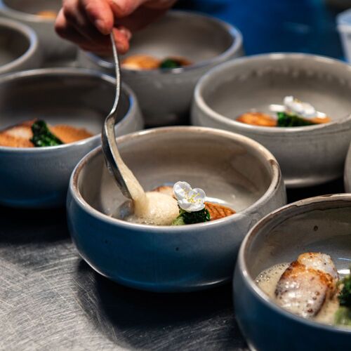 “Falling and getting back up” is how Sven Fonteyn describes his journey. He designed this charming friendly restaurant as his very own paradise, a feeling he endeavours to communicate through his cooking. Each dish is depicted by his open-minded outlook and commitment to quality. Exotic, often Asian twists add a refreshing dimension to his playful recipes, illustrated by his new take on the traditional rabbit with prunes recipe. The spot-on menu changes regularly, to the delight of the loyal crowd of patrons.