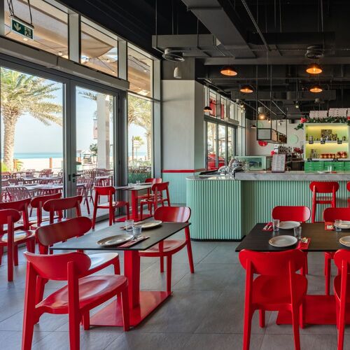 A lovely beachside Italian restaurant is always a good idea. Overlooking the Arabian Gulf’s azure sea on Mamsha Al Saadiyat, this spot feels like an American pizza parlour but serving some of Italy’s favourite classics, like generously portioned carpaccio and pasta, but the star here is the delicious pizza made with a sourdough crust – their starter dough recipe is 50 years old. Tiramisu is always a top choice for dessert!
