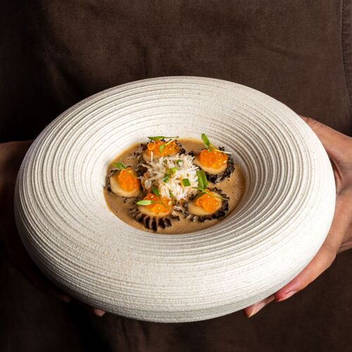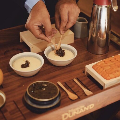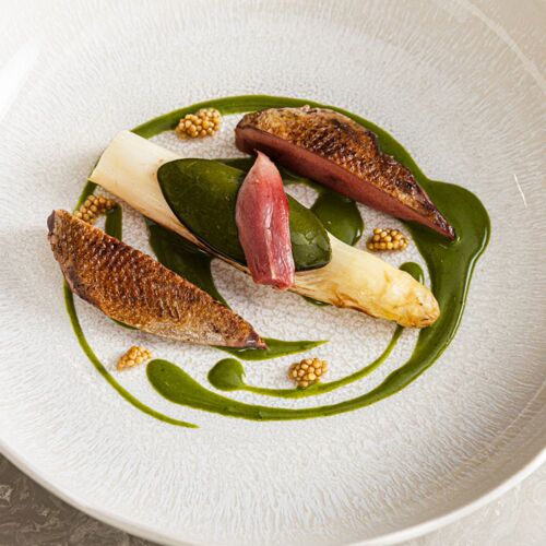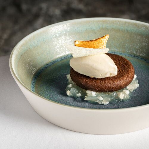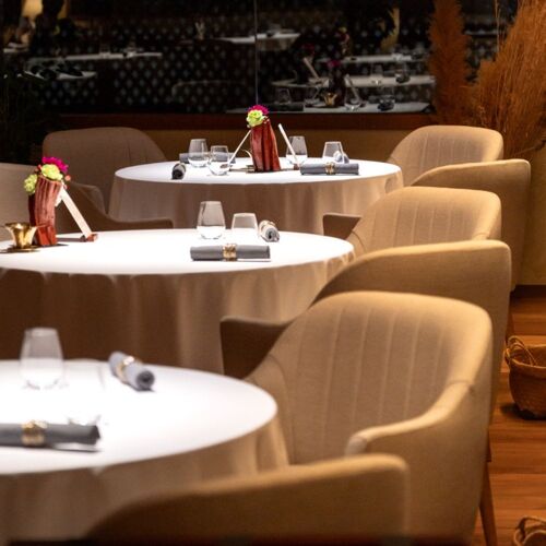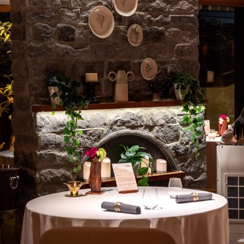 เชฟ Arnaud Dunand Sauthier เชิญชวนเหล่านักชิมมาสัมผัสบรรยากาศอบอุ่นเสมือนบ้านสไตล์ชาเลต์ที่ได้รับแรงบันดาลใจจากวัยเยาว์ในแคว้นซาวัว เทสติงเมนูร่วมสมัยถูกรังสรรค์อย่างพิถีพิถัน ถ่ายทอดทั้งความทรงจำจากเทือกเขาแอลป์ วันหยุดริมชายฝั่งเบรอตาญ และประสบการณ์อันโดดเด่นจากเส้นทางการทำอาหารระดับโลกของเชฟ แต่ละคอร์สละเอียดอ่อน ทว่ากลมกล่อมและเต็มไปด้วยเอกลักษณ์ ห้องไวน์โดดเด่นด้วยคอลเลกชันจากแคว้นอาลซัสและซาวัว ไฮไลต์คือรถเข็นชีสที่บรรจุชีสมากกว่า 20 ชนิด ส่วนใหญ่เป็นชีสฝรั่งเศสสลับกับชีสท้องถิ่นที่ผ่านการคัดสรรมาอย่างดี