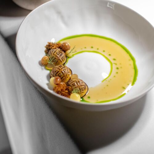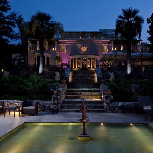 One of the most desirable and exclusive locations in Taormina, the St. George is situated in The Ashbee Hotel, an early-20C villa on the edge of Taormina’s historic centre which has retained all the charm of a private house with its elegant lounge and breathtaking terrace adorned with palm trees that frame the Straits of Messina. The cuisine comes courtesy of a partnership between Heinz Beck and resident chef Salvatore Iuliano. The three-starred Michelin chef’s instinctive elegance and gastronomic intuition combine with Calabrian-born Salvatore’s passionate and colourful take on Mediterranean cuisine. Together, the cuisine and setting guarantee an unforgettable dining experience.