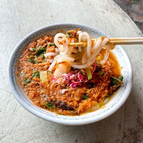 There are many shops in Penang selling roasted duck, but this stall's tender braised duck is packed with flavour, including soy sauce, anise and cinnamon. They also serve braised pork belly, pork intestines, egg and bean curd.