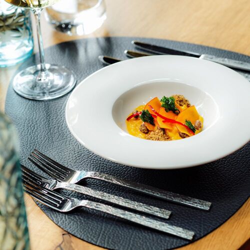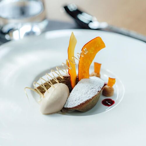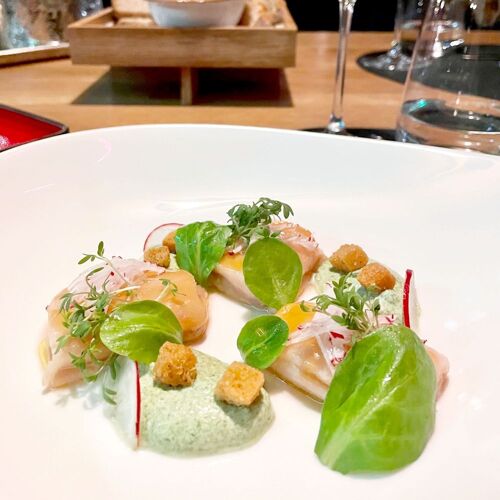 Located on an industrial estate, this restaurant has a modern and inviting feel. In the evening, the team led by Peter Wirbel – a talented chef who has made a name for himself in the area – serves up finely balanced dishes packed with flavour, using local produce wherever possible. Tuesdays feature an eight-course surprise amuse-bouche menu, and from Wednesday to Saturday, you can order the "midi" set menu which has four to seven courses. The waitstaff are very friendly and well trained – the chef is also on hand to elucidate his culinary concept. Tip: tasty treats to take home are on sale at the Biosphärenmarkt.