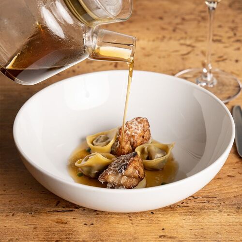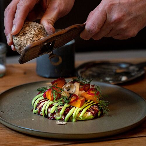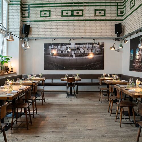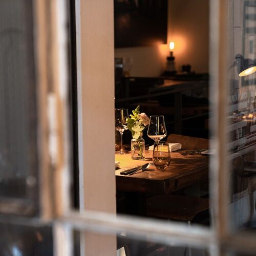This restaurant tucked away in the third courtyard of the Otto-Reichel-Höfe is a real success story. Inside, the converted distillery exudes a casual, trendy "urban loft" atmosphere with an industrial feel. In this setting, diners savour seasonal ingredient-led cuisine in the form of uncomplicated modern dishes served on beautiful solid old beechwood tables. You can order them however you like: as a four- to six-course set menu or as individual dishes, including, for example, guinea fowl from Burgundy, carrot, sage and beurre blanc. Alternatively, you might prefer to choose from the eins44 Kantine menu, which includes classics such as aspic, mussels or fish of the day. The service from the dedicated and friendly team is highly attentive.