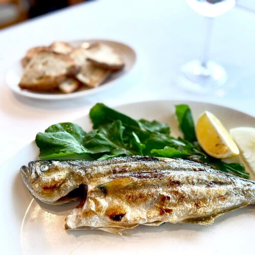 Güzel tablolarla süslenmiş ve pitoresk yat limanının nefes kesici manzarasını sunan etkileyici bir deniz ürünleri restoranı arıyorsanız, bu uzun yıllardır gözde restoran tam size göre (üst katta bir masa isteyin)! Meze seçimiyle başlayın ve ardından arzularınıza göre hazırlanacak olan bol çeşitli balık ve deniz ürünlerinden birini seçin. Müfettişimiz, teşhir dolabından masada fileto haline getirilmeden önce kusursuz bir şekilde tavada kızartılmış olan dil balığı seçti. Burada her şey ürünlerden ibaret!